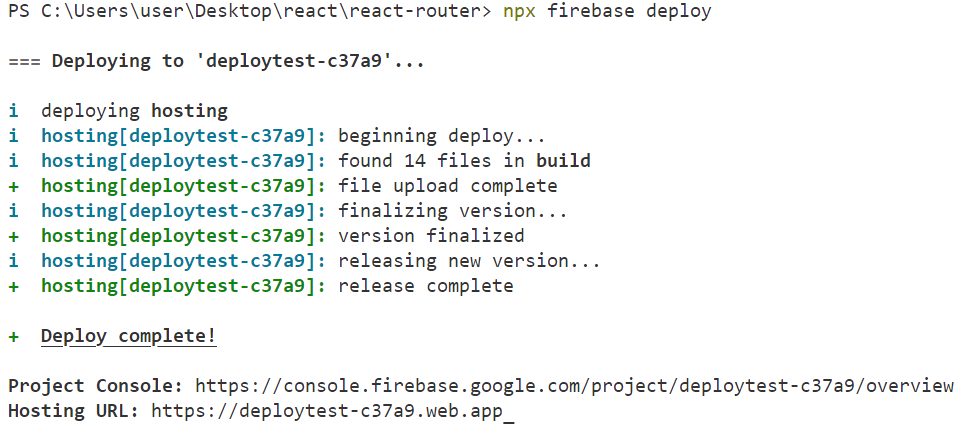 • npx firebase deploy (파이어베이스에 배포)만 하면됩니다.