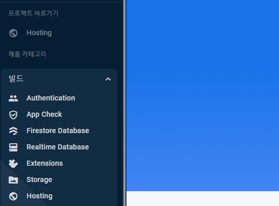 파이어 베이스에서 시작할 기능을 스페이스로 선택하세요.